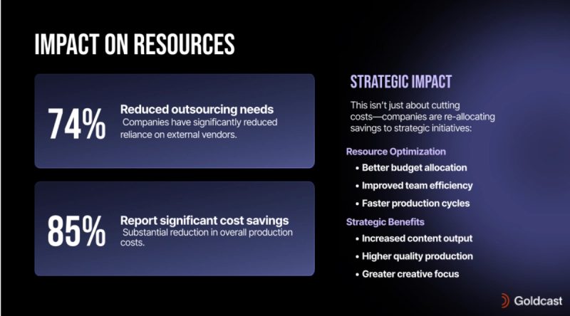 According to our data, 74% of marketers using AI have cut down on their outsourcing needs, meaning they need to hire less contractors and third-party vendors. 85% have also reported significant cost savings.