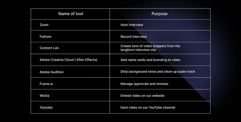 The tech stack for this video looked like this: