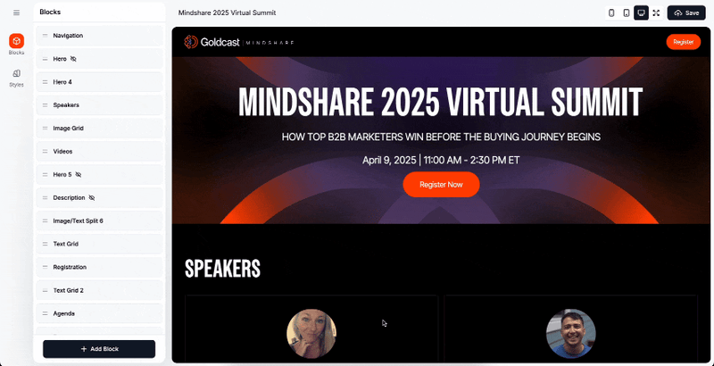 You can now embed live Goldcast webinars right into your own site. That means more traffic to your domain, without sacrificing the interactive experience your audience expects.